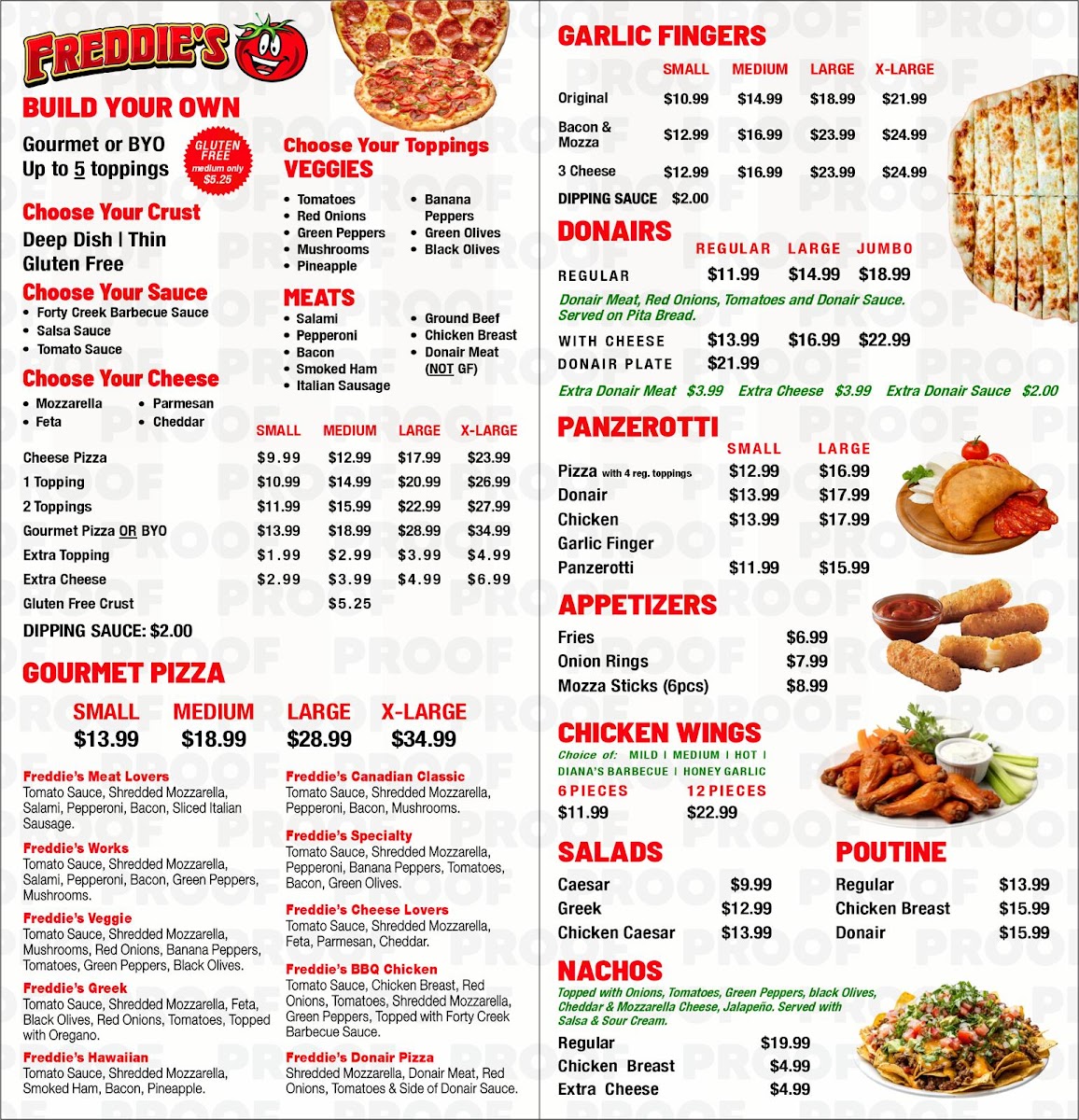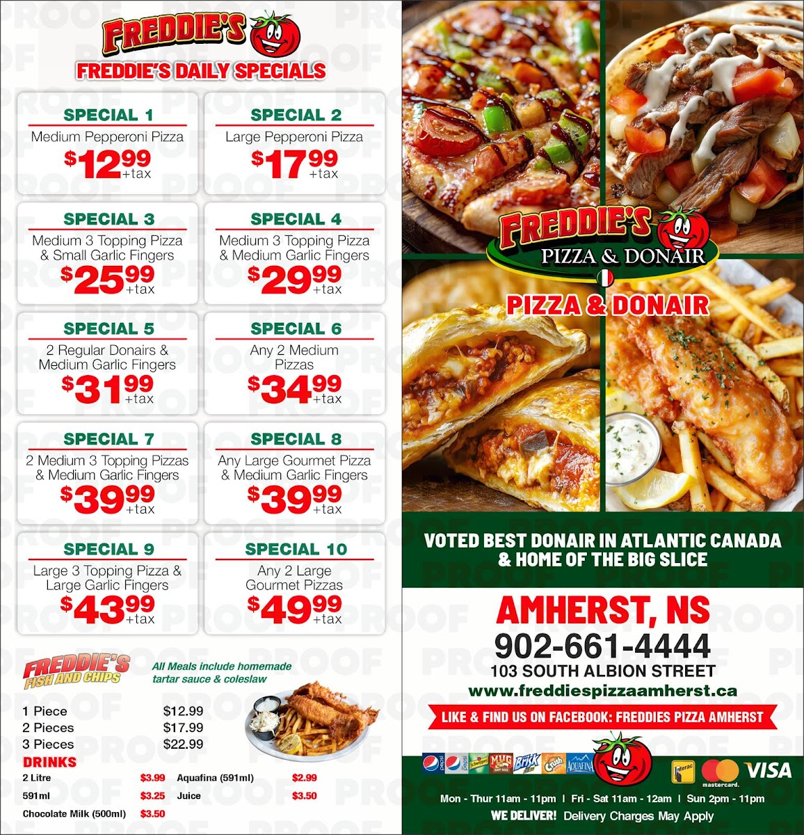 Introducing the menu at Freddie's Pizza & Donair Amherst unveils a delightful array of culinary offerings that cater to every craving. Located in the heart of Amherst, this eatery is celebrated for its generous portions and a warm, welcoming atmosphere.